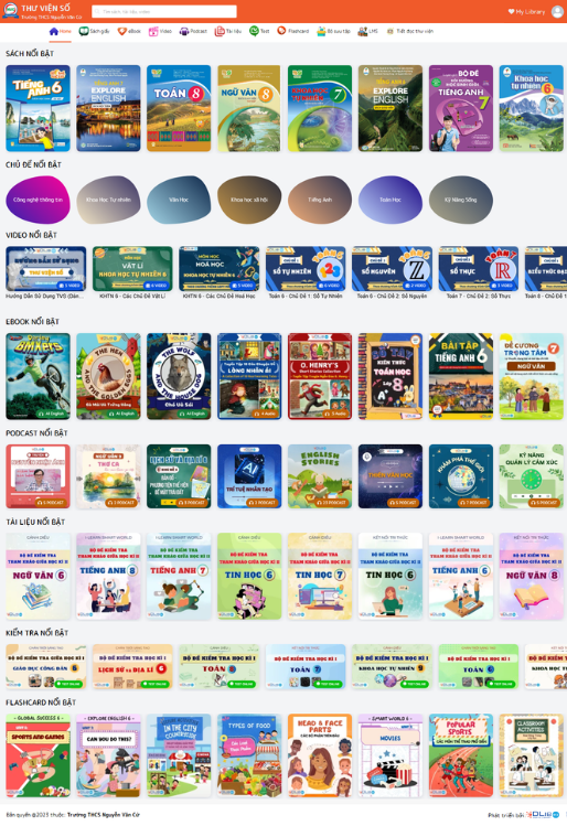 Triển khai hệ thống lưu trữ đám mây: Xây dựng một nền tảng Thư viện số dựa trên công nghệ đám mây cho phép quản lý và truy cập các tài liệu số. Đây là nơi học sinh và giáo viên có thể tìm kiếm, đọc, xem, nghe, luyện tập và tải tài liệu.